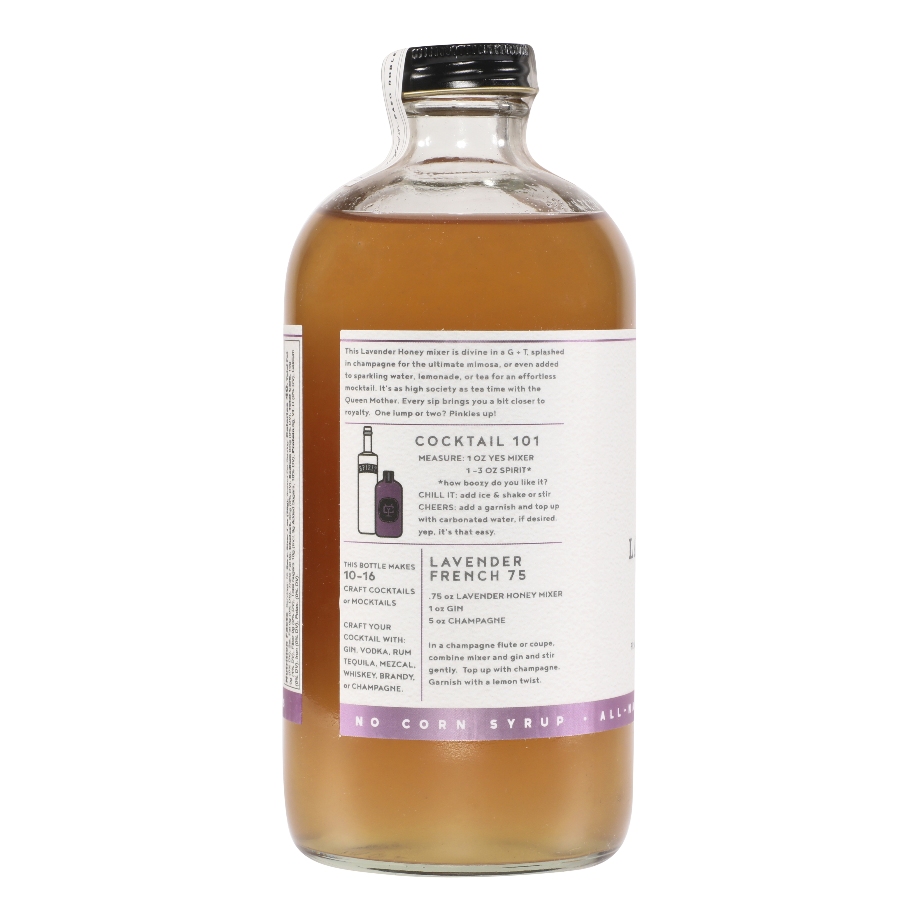 Pair with vodka, gin, whiskey, rum, bourbon, brandy or champagne. Makes a great mocktail in sparkling water, lemonade, or tea! Add to steamed milk and espresso for a Lavender Latte.