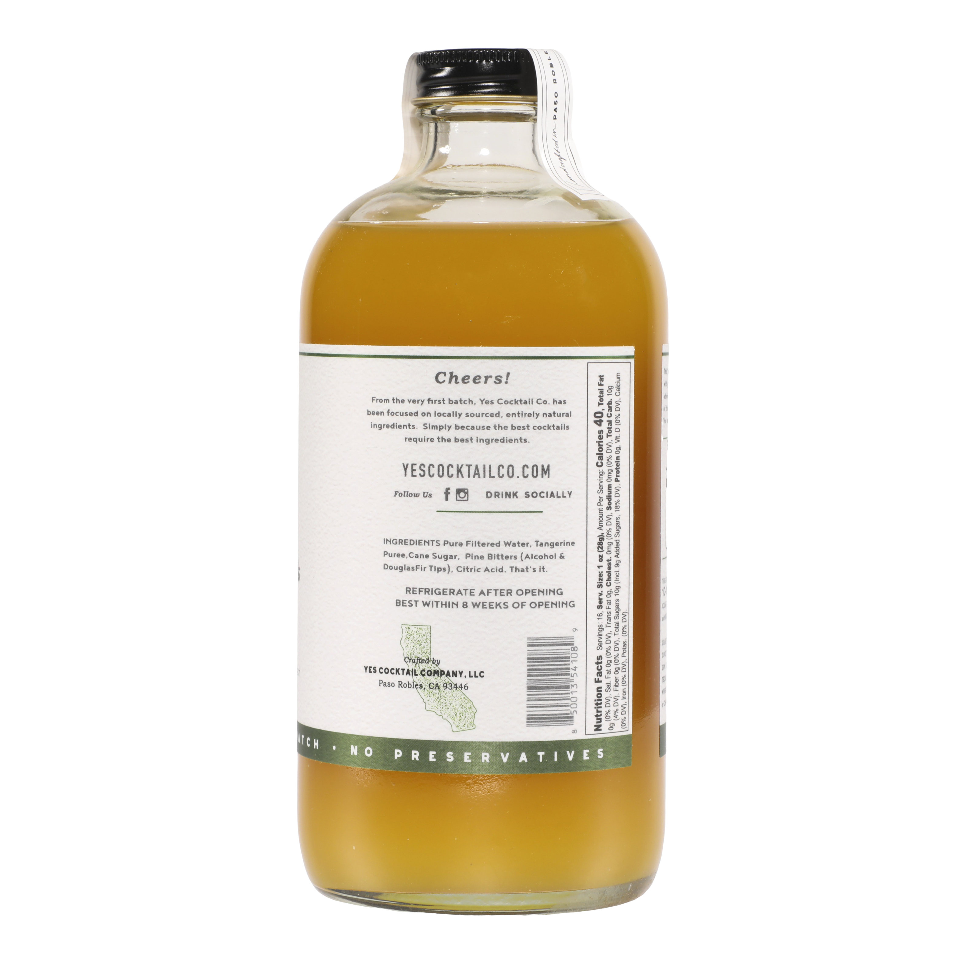 ingredients: pure filtered eater, cane sugar, tangerine juice, lemon juice, douglas fir tip bitters(alcohol. douglas fir tip, natural flavor), citric acid